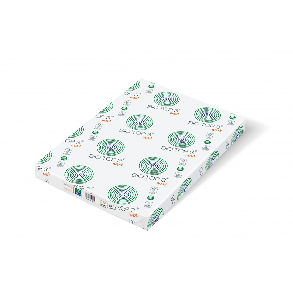 BIO TOP 3® next es extremadamente versátil y cumple con los más altos requisitos: combina un aspecto auténtico con un gran perfil medioambiental. Fabricado totalmente libre de cloro (TCF), sin blanqueantes ópticos (OBAs), el papel detenta un tacto y un color naturales, asegurando un aspecto con mucho estilo. También es Ideal para aplicaciones OCR (reconocimiento óptico de caracteres) y excelente para su archivo por largo tiempo. BIO TOP 3® es reciclable y biodegradable.