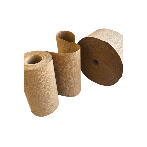 Papel Kraft crepado con alta flexibilidad y resistencia, perfecto para envolver, amortiguar y proteger productos irregulares o frágiles.LISTA GAMA COMPLETA